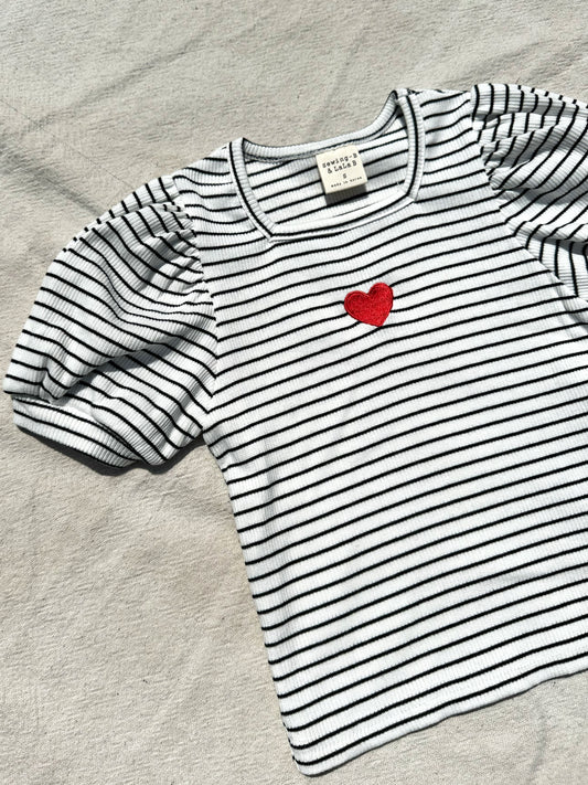 Strawberry Long Sleeve Puff Shoulder Top in White