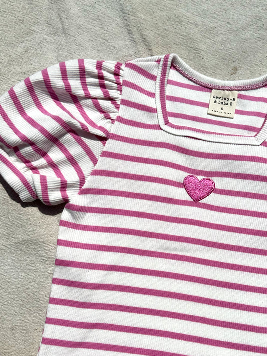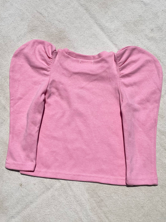 Strawberry Long Sleeve Puff Shoulder Top in Pink