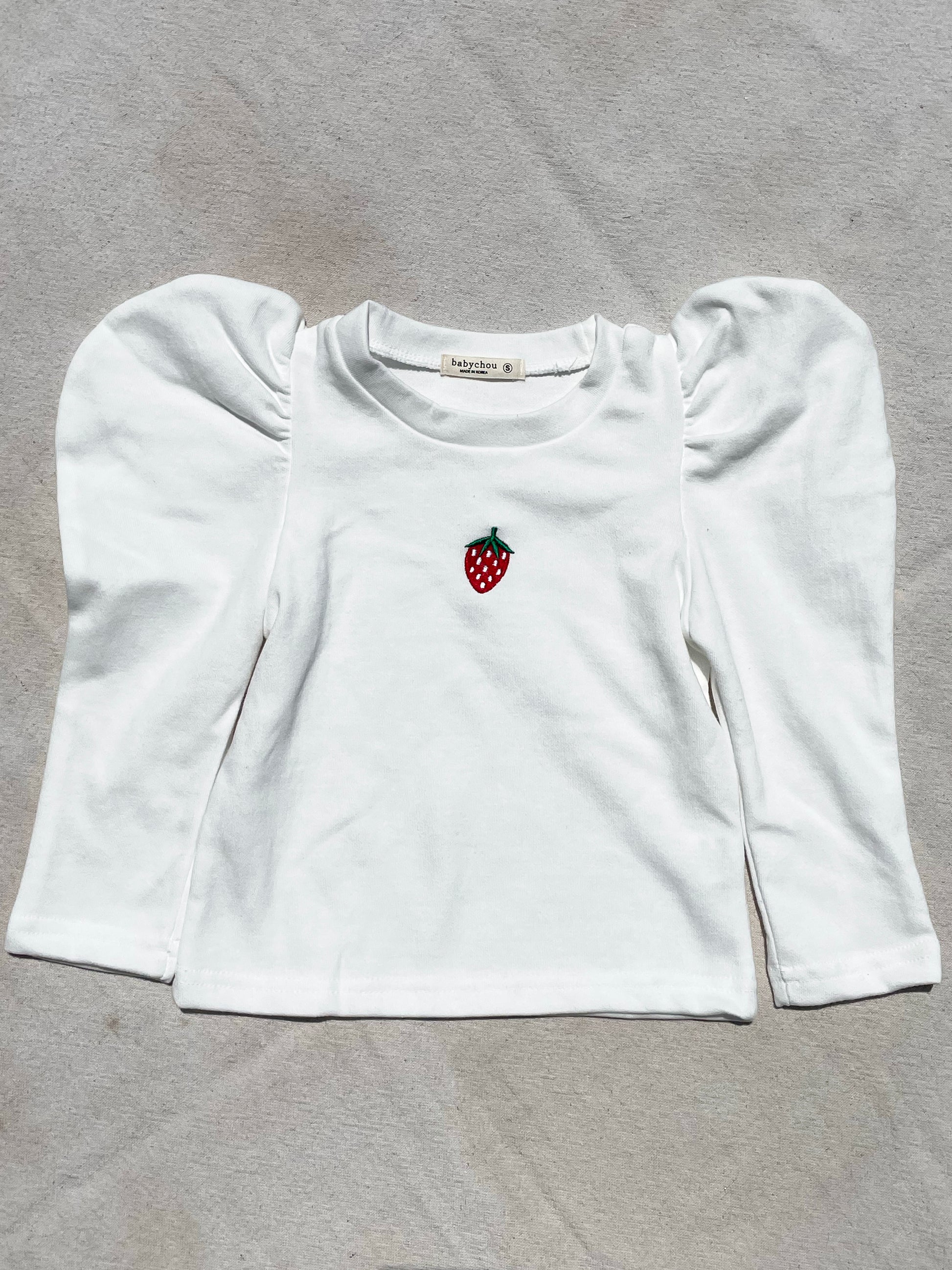 Strawberry Long Sleeve Puff Shoulder Top in White